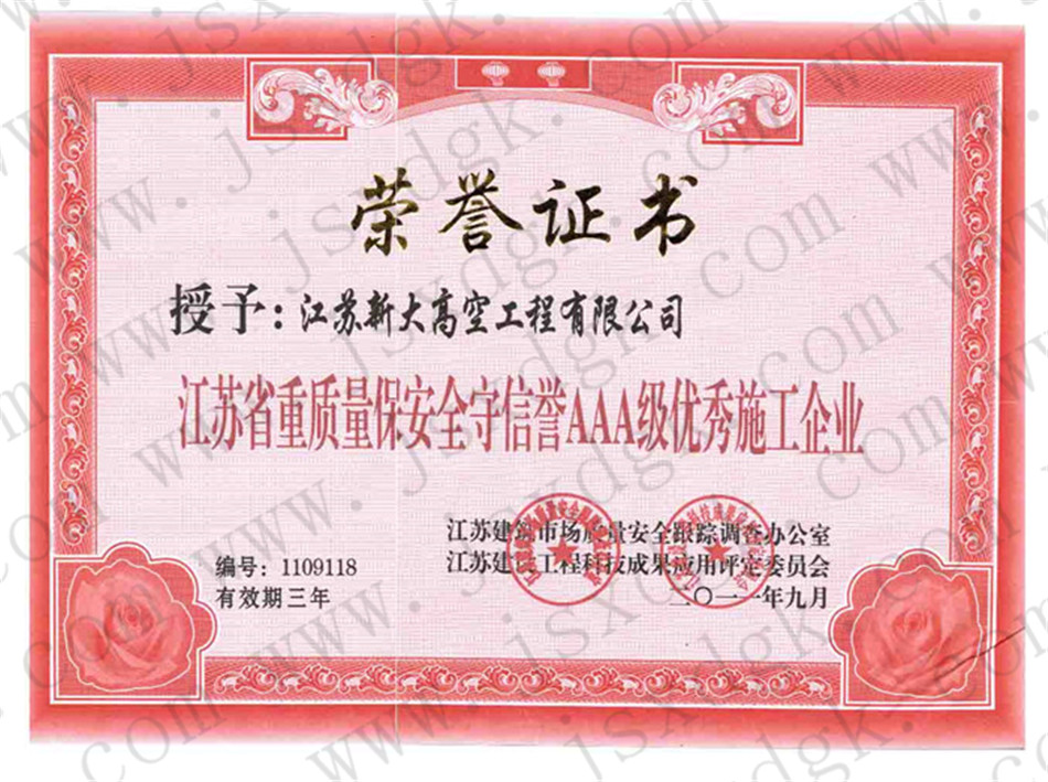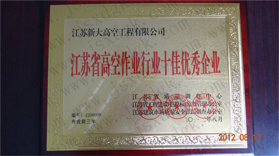 江蘇省高空行業(yè)五十強行業(yè)證書
